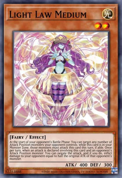 At the start of your opponent’s Battle Phase: You can target any number of Attack Position monsters your opponent controls; this turn, while this card is in your Monster Zone, those monsters must attack this card, if able. Once per turn, when an attack is declared involving this card and an opponent’s Attack Position monster: You can negate that attack, and if you do, inflict damage to your opponent equal to half that opponent’s monster’s original ATK.