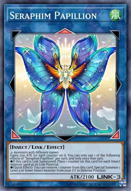 Gains 200 ATK for each counter on it. You can only use 1 of the following effects of “Seraphim Papillion” per turn, and only once that turn.
