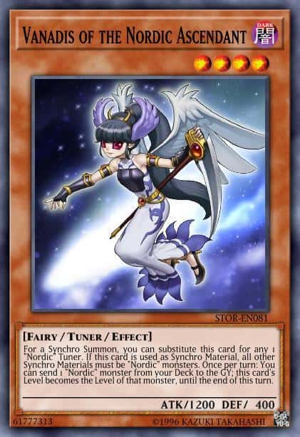 For a Synchro Summon, you can substitute this card for any 1 “Nordic” Tuner. If this card is used as Synchro Material, all other Synchro Materials must be “Nordic” monsters. Once per turn: You can send 1 “Nordic” monster from your Deck to the GY; this card’s Level becomes the Level of that monster, until the end of this turn.